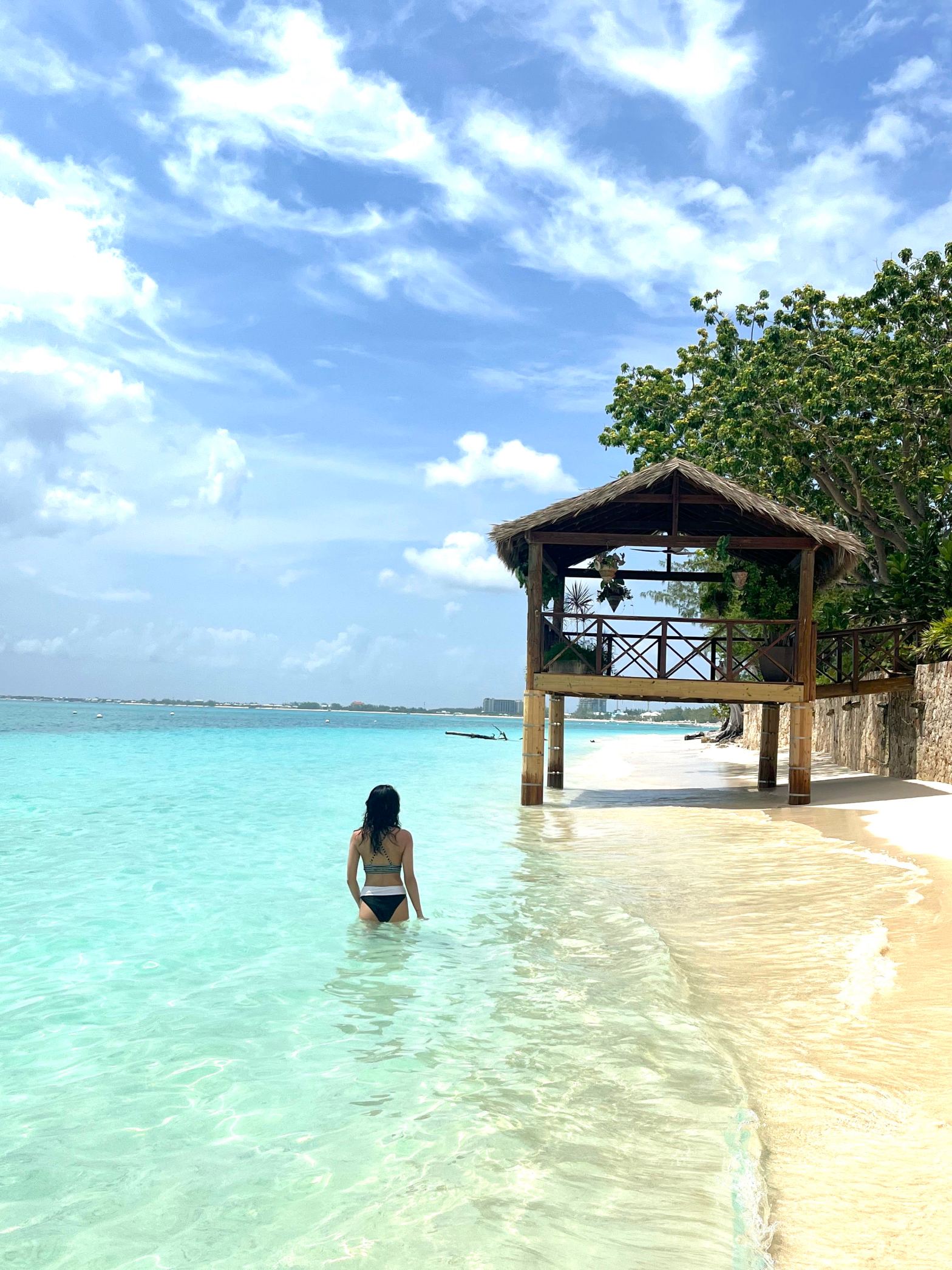 Seven Mile Beach – parts of the beach are public access, while other parts are on private resort property, but you can still walk past it. At our hotel, there is an access point around the corner that is 2 – 3 minutes from the beach, but it’s a bit narrow and between houses. There were a lot of small lizards along the path. Once you get to the beach, there are chairs and umbrellas that seem like they are for public use (or else they were part of the condominium right behind it, but people were just using it).