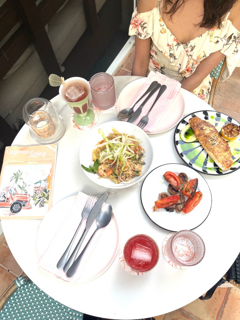 Ms. Piper’s Kitchen & Garden Cayman – located at the Hampton hotel, this “garden” restaurant was a bit pricey but well worth it with delicious food/drinks and cute ambiance. We ordered the Branzino filet and seafood tagliatelle, along with the summer trifle for dessert. Everything was super tasty, and the service was exceptional. There’s also live music in the evening.