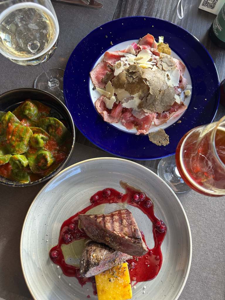 La Terrazza Ristorante – I highly recommend this restaurant for both the delicious food and fantastic views of Piazza della Libertà and the surrounding hills of San Marino. Be sure to try the mouthwatering cappellacci verdi—green pasta stuffed with ricotta cheese and served in a rich tomato sauce. We also ordered the venison sirloin and carpaccio, though both were okay.